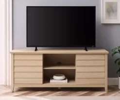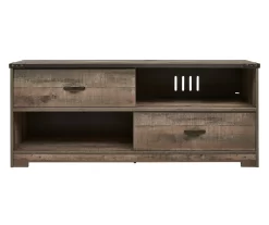 Simple yet highly functional. Find the perfect spot for your TV while adding the clean style and charming good looks of this TV stand from Sauder. This TV stand with storage accommodates up to a 32” TV, allowing you to watch your favorite shows, have an all-day movie marathon or play endless hours of video games with your friends. The large lower shelves provide additional storage space for items like electronic components, gaming systems, framed photos, boards games and other home décor items. Already have a TV stand? Use it as a credenza with its spacious top surface for storing and displaying items like decorative plants, magazines, knick-knacks or anything else you want to showcase. Finished in a rich cinnamon cherry color, this modern TV stand is a functional addition to the living room, basement or wherever your home needs a storage solution.