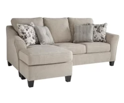 Raising understatement into an art form, this sofa chaise impresses with a tailored silhouette. Designed in a warm neutral color perfect in any contemporary home, this sofa chaise is wonderfully versatile with loose seat cushions that allow you to rearrange the chaise with the flip of a pillow. Coordinating toss pillows complete this look for a style that feels right at home.
