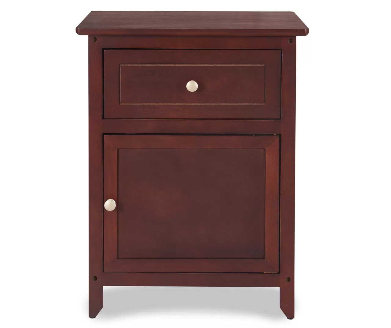 For a stylish accent that keeps nighttime essentials within arm’s reach, choose this spacious side table. With a top drawer and cabinet, it’s crafted in a traditional style for an enduring look that fits a variety of interior design themes, from a classic to coastal. The brushed silver hardware adds a sophisticated touch.