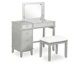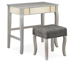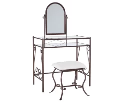 Laura 2-Piece Walnut & Beige 6-Drawer Tilting Mirror Vanity Set
