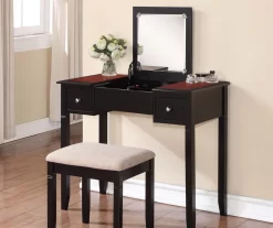 Merci 2-Piece White & Walnut 2-Drawer Lifting Mirror Vanity Set