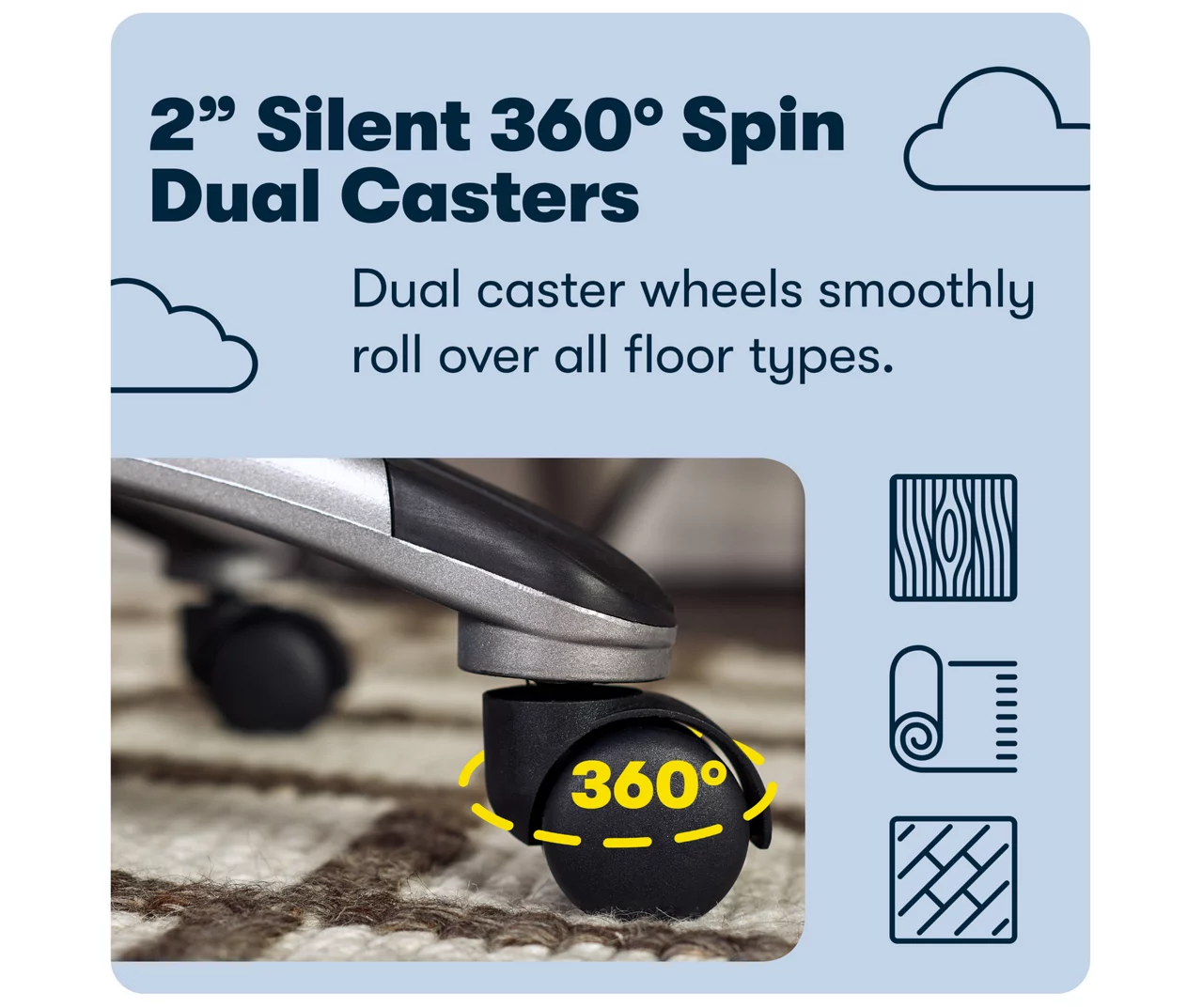 - Heavy-duty 60 mm caster wheels offers smooth mobility