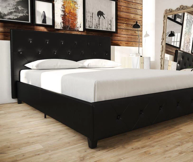Let the sumptuous faux leather upholstery do the talking with the DHP Dana upholstered bed. Sleep in high style and comfort, because this bed is carefully crafted to beautify your home. The Dana is constructed to ensure ultimate sleeping comfort for you with the premium bentwood slats system that adapts to changing pressure. Upholstered in premium faux leather with padding for superior comfort, this bed is expertly designed to be any room’s eye candy.