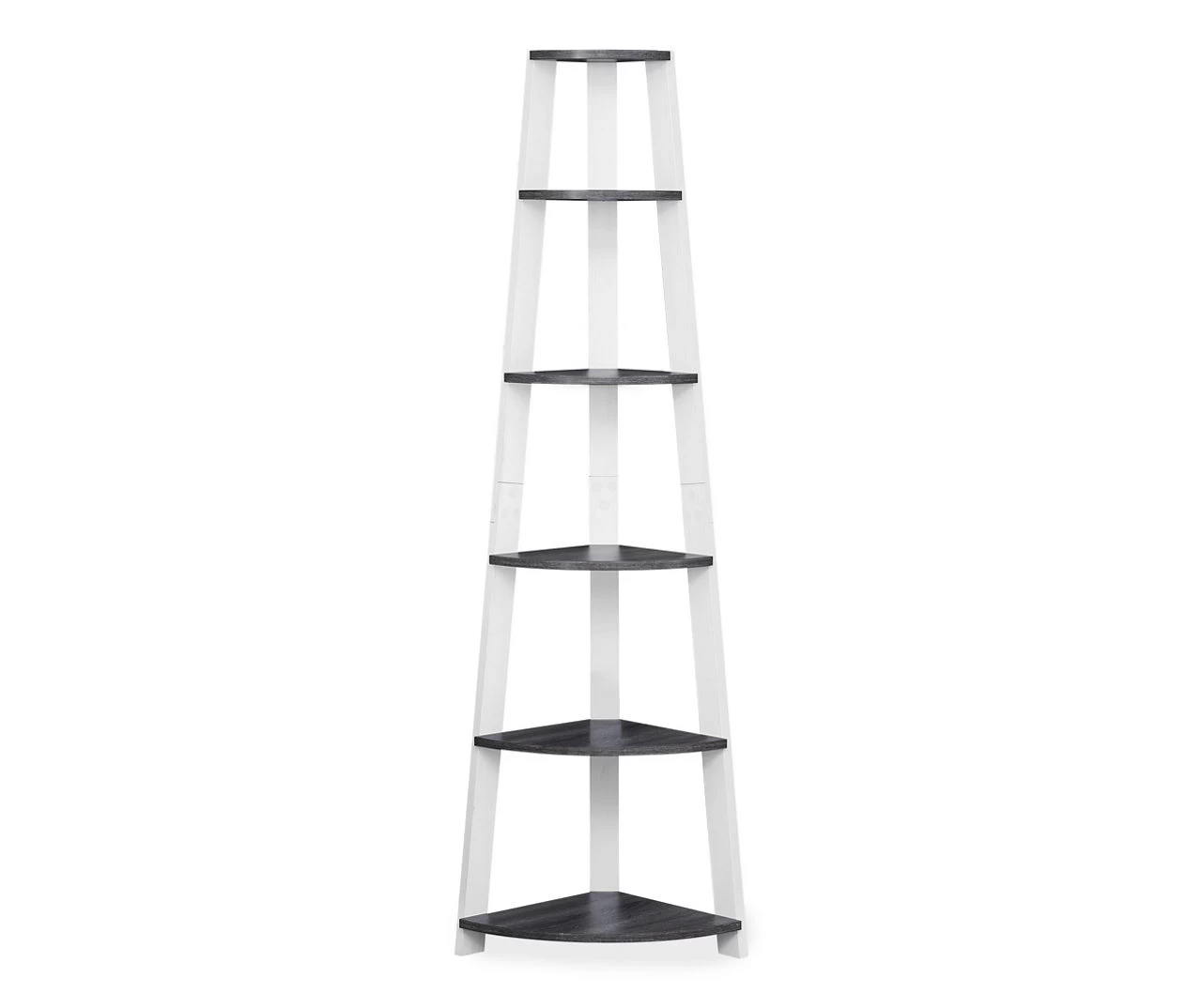 Make use of a spot that is often tough to work with: the corner. Set up this etagere bookcase and let it do its thing! Look how nice this bookshelf fits in a corner of your living room, office or bedroom, allowing you to showcase books and all types of decor easily. Maximize storage and display with a modern piece that will be sure to help you utilize all the space available to you thanks to five fixed tray style shelves. Three sturdy beam legs ensure structural integrity to this corner ladder shelf, finished in a white color.