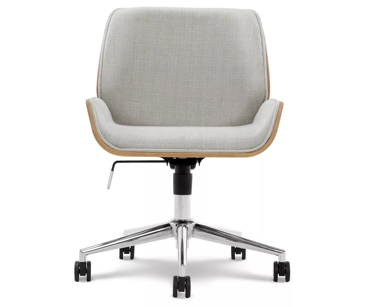 Make a chic statement in any space with this elegant office chair. Thanks to soft tailoring on the comfortable cushion and bentwood accents, this stylish armless design adds a dose of charm to any setup. The fabric’s color is ideal for accessorizing a home office, bedroom or even dorm room. You’ll look forward to getting work done once you have this comfortable chair waiting for you. The modern chrome accents and wood seat elevate this chair above those boring office chairs out there, making this task chair the perfect statement piece for spaces big and small. Whether you’re setting up a home office of making your own space at work, the modern bentwood seat and its sophisticated color set this chair apart from other office chairs. Comfy and classy, this chair does it all.