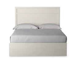 The perfect marriage of simple and contemporary style, this queen platform bed is a charming addition to your home. This bed keeps things simple with its dark charcoal finish over replicated oak grain. Best of all, this bed includes a footboard, rails and platform – no additional foundation or box spring needed.