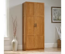 Keep your home organized in style using the Seven Hills cabinet from Real Living! Decorative cane inserts accent each door that creates concealed storage for your items. Finished in a rich acorn brown color that contrasts with a raised black base, this cabinet is a stunning addition to an entryway, living space or dining room.