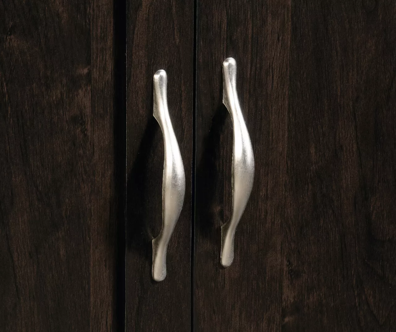 Extra storage is always a plus! This storage cabinet from the Sauder has room for all stuff. This double door storage cabinet features four adjustable shelves for customizable storage options depending on your needs. Whether you are storing books, binders or linens, this two-door storage cabinet will adjust quickly. A full-width upper shelf allows it to be the perfect place to stash bins, blankets, board games and more. Finished in dark Cinnamon Cherry, this tall cabinet is perfect for the kitchen, basement, garage or anywhere you need a storage solution.