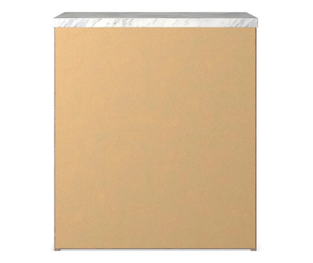 Cool, clean and casually modern. This nightstand’s light natural finish and faux Calcutta marble top set the tone for your calming sanctuary. Large linear pulls add dimension and authenticity. Two smooth-gliding drawers neatly accommodate your bedside needs.
