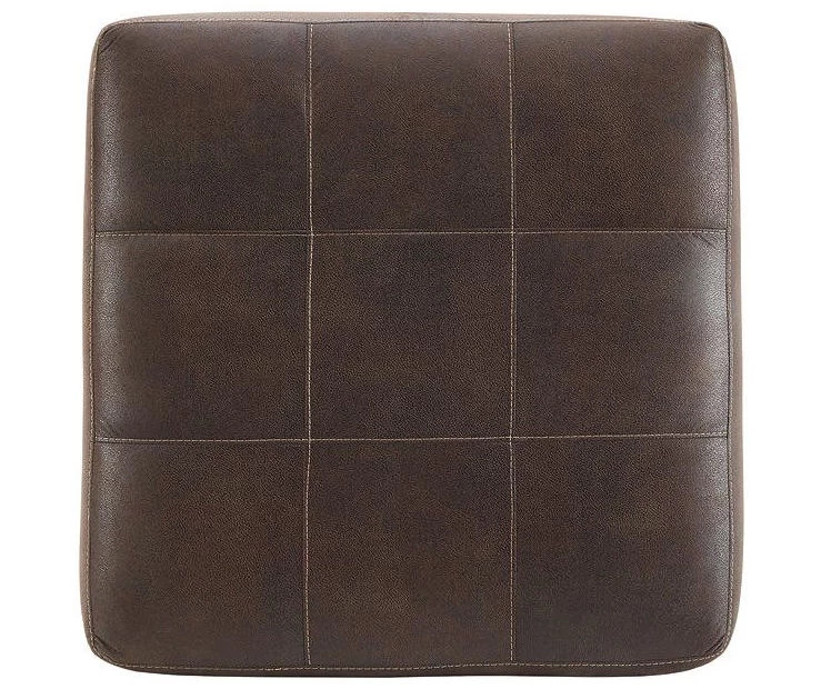 If you love the cool look of leather but long for the warm feel of fabric, you can take comfort in this oversized ottoman. Wrapped in a fabulous faux leather with a weathered hue and hint of pebbly texture to resemble the real deal, this decidedly modern ottoman proves less is more. Elements include jumbo stitching for fashion-forward flair.