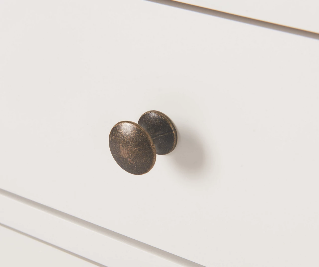 The ultimate accent piece for storing your evening essentials, the nightstand offers both form and function. With its solid wood frame and antique bronze hardware, this design will easily blend into any decor style. The three roomy drawers are perfect for storing books and power cords, while the top surface plays host to lamps and candles. Place yours in the master suite or guest bedroom for a foundational piece that you’ll use for years to come.